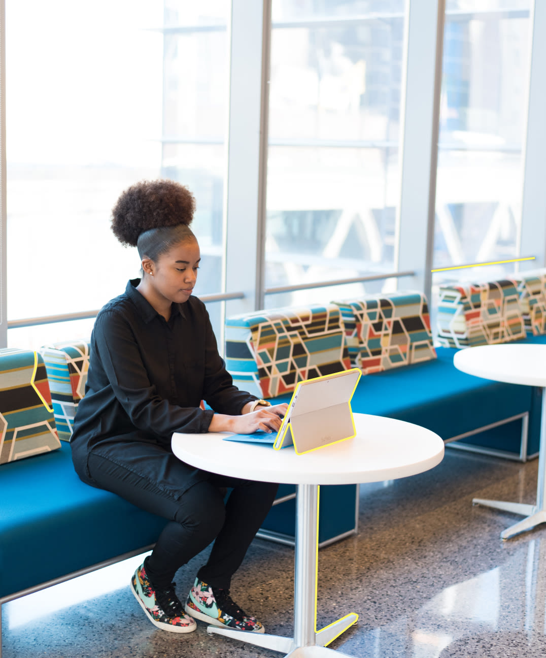 Frau nutzt Salesforce Cloud auf ihrem Tablet.