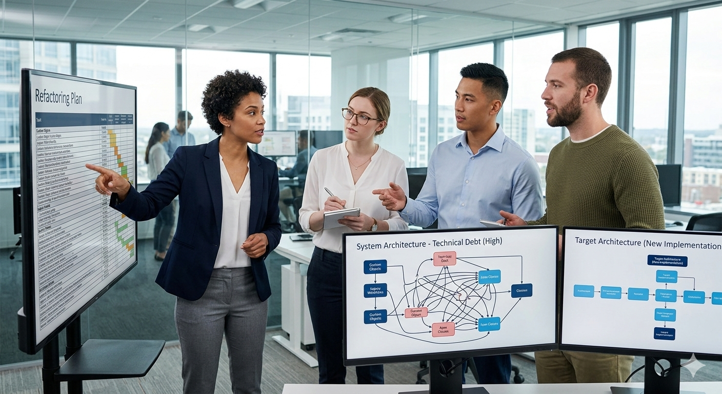Historisch gewachsene Anpassungen und komplexe Workarounds bremsen Weiterentwicklung. Durch Refactoring und klare Architekturprinzipien wird die Plattform wieder wart- und skalierbar.