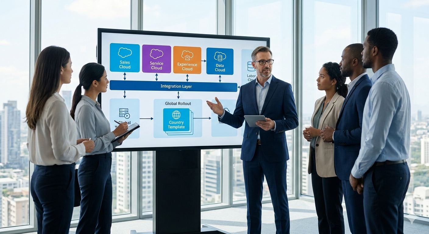 Neue Clouds oder Länder-Rollouts erhöhen die Komplexität. Eine konsistente Orchestrierung von Sales, Service, Experience oder Data Cloud sichert Stabilität und Erweiterbarkeit.