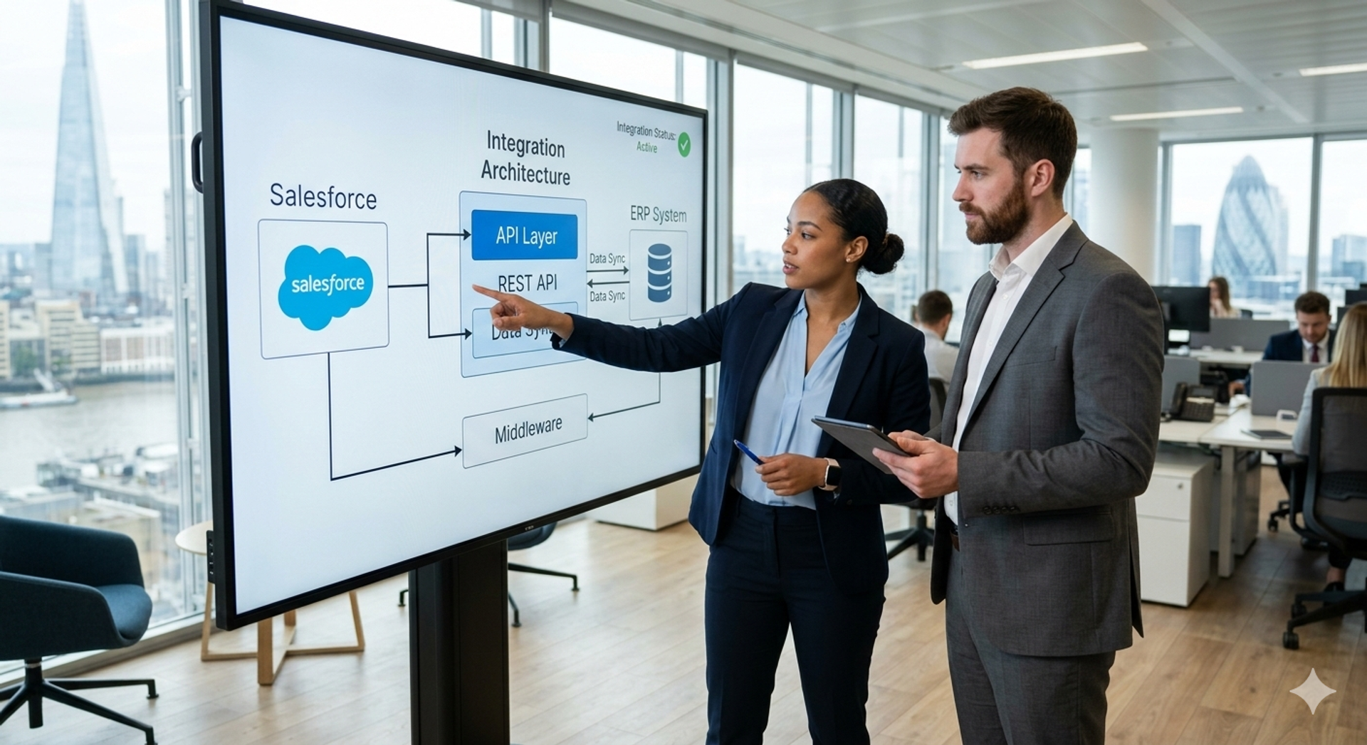API-basierte Integrationsarchitekturen verbinden Salesforce mit ERP-, PIM- und weiteren Drittsystemen.