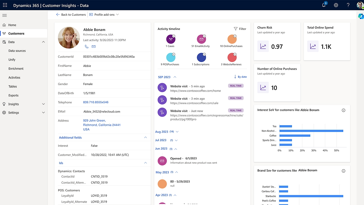 Dynamics 365 bietet Vertrieb, Marketing und Kundenservice detaillierte Kundenprofile in Microsoft-typischem Design. (Bild: Microsoft)