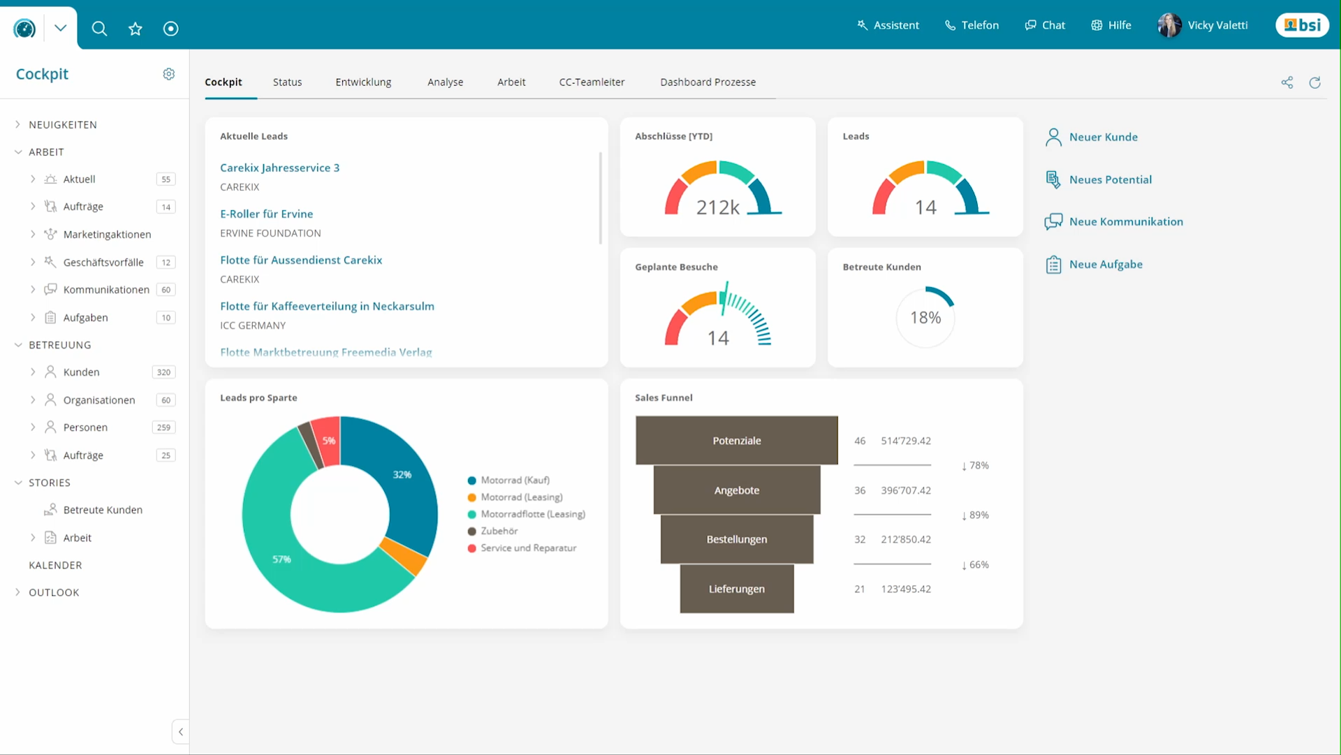 Alles Wichtige auf einen Blick: Das BSI Cockpit bündelt relevante Kennzahlen und bietet Vertrieb, Service und Marketing einen 360-Grad-Blick auf die Kunden. (Bild: BSI)